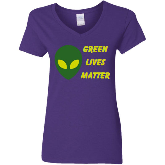 Alien, Green Lives Matter. Ladies' V-Neck Gildan T-Shirt.
