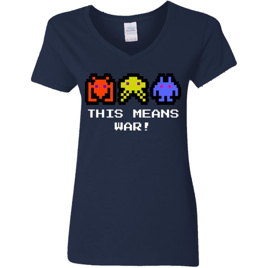 Arcade Invaders. Retro Gaming Ladies' V-Neck. Bright 80's Colors. Gildan T-Shirt.