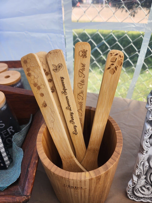 Bamboo Wooden Cooking Spoons. Bees and Honeycombs design. Kitchen Utensil.