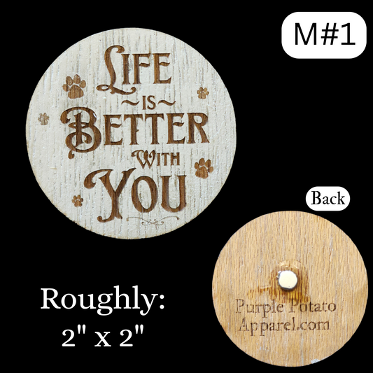 Magnets. Round "Life is Better with You". Different Sizes. Rustic, Farmhouse style.