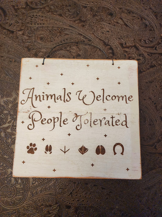 Wood Sign, Upcycled, Handmade. Animal Paw/Foot prints. "Animals Welcome People Tolerated" (Copy)